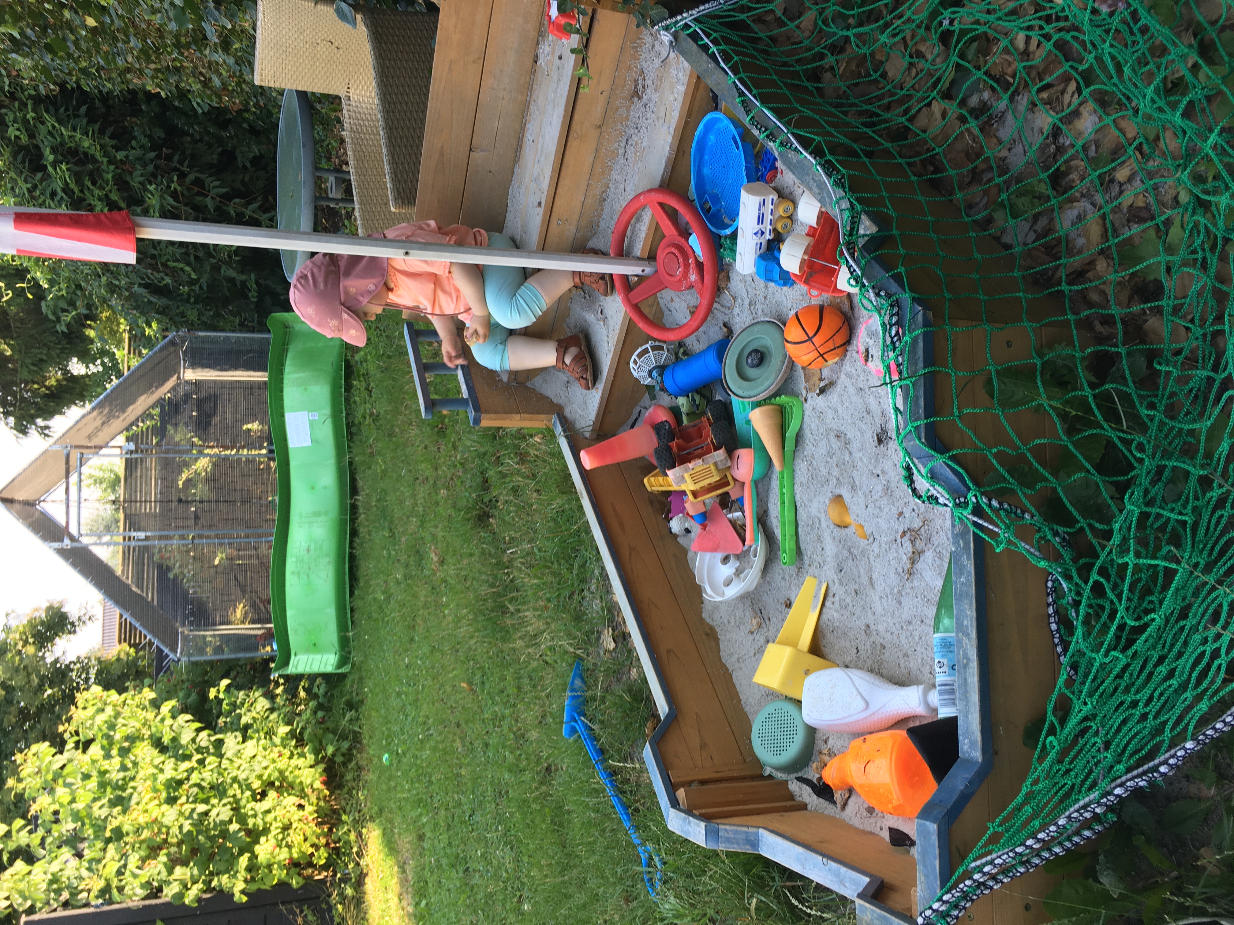 Vi går en tur på legepladsen eller til strandparken og kigger på skaller og dyr. Vi er ude af huset 3-4 dage om ugen, og dette prioriterer jeg rigtig højt. Vi tager på ture i området, til Trylleskoven eller de omkringliggende legepladser, hvor vi også mødes med andre børnepassere. Vi benytter også vores store godkendte ladcykel til ture lidt længere væk, fx til Mosede Havn for at kigge på både og spise fiskefrikadeller, Hundige Bibliotek til oplæsning og teater, til biblioteket i Solrød for at høre musik eller se teater, ellers tager vi toget til Køge og handler på det skønne marked. Vi har også hjemmedage hvor vi er ude i haven (primært i vinterhalvåret), hvor vi efter leg i egen have maler, klipper/klistrer, bager, hopper i madrasser og slår koldbøtter.