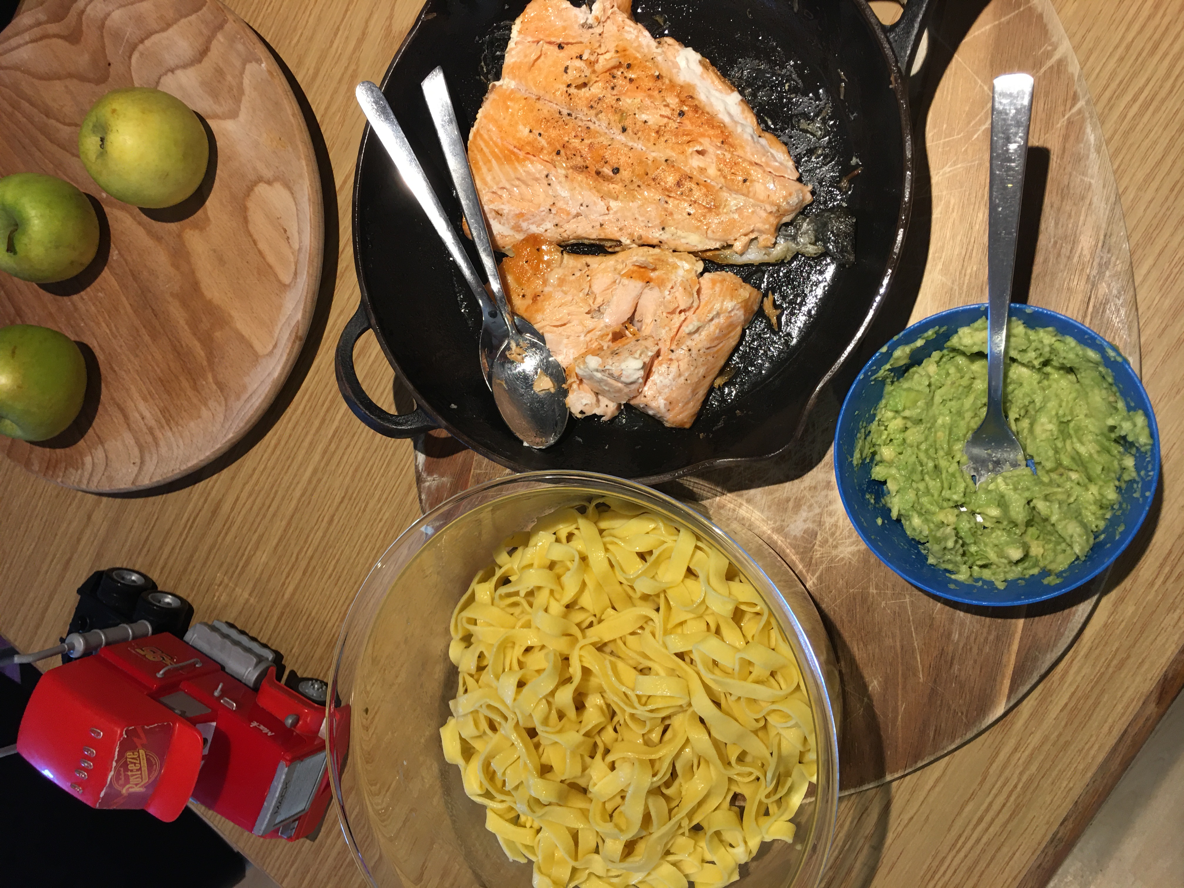Jeg står for formiddagssnacks, frokost og eftermiddagssnacks. Jeg holder en ret sukkerfri linje i hverdagen, med enkelte undtagelser (fastelavsbolle til påske, æbleskiver til jul etc). Jeg prøver så vidt overhovedet muligt at holde kosten økologisk og bager meget brød selv. Vi får Årstidernes frugt og grøntkasse og jeg handler ofte ind efter øko tilbud i butikkerne. Jeg køber ind økologisk og laver en madplan basseret på de råvarer jeg har.